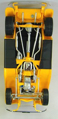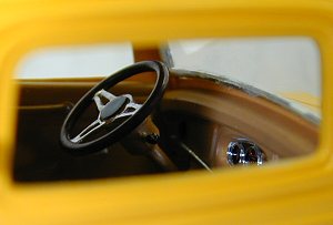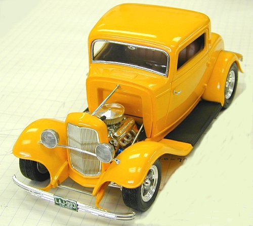 My first major decision was whether to detail the kit or build it box stock. Even though there are literally thousands of aftermarket kits and parts for scale model cars, I opted for the later approach. I decided to paint my model in the "unicolor" theme that is so popular among hot rodders today, and chose Testor’s Model Master Chrome Yellow as my paint theme.