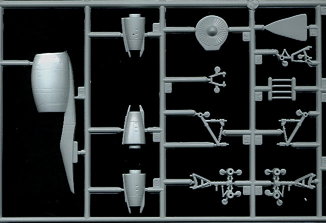 Otaki made some effort to dampen the "black hole" effect on the center inlet. A plate is given to partially blank off the bottom of the inlet (part 19 on the sprue scan above), and a compressor fan is given for the center engine. However, the hollow area leading up to the vertical fin and the stabilizer tabs will still be visible once this is built. I'll have to think about ways to approach this problem, as it is a vexing one! To be fair, no manufacturer has ever done a full S-duct for any airliner type that has one.