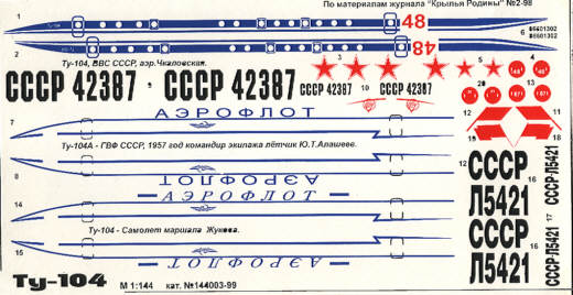 | KIT: | OKB-144 Tupolev Tu-104A, 1/144th scale |