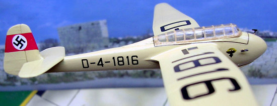 The two sets of decal markings are of good quality and almost identical. Tail unit swastika are supplied for both having a red stripe background. The overall cream scheme turns it into a very attractive model glider especially once the large overawing black registration decals are put in place. It may be wise to note at this stage that it would be a good idea if one considers adding the CMR kit of the G3 Rhonsperber glider out of which the Kranich has evolved.