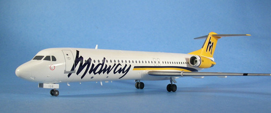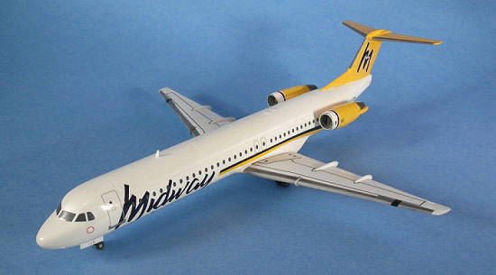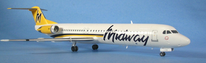 Resurrected from the rubble of a previous company of the same name, Midway Airlines began flying five Fokker 100s out of Chicago’s Midway Airport in 1993. After struggling through a rough year in Chicago, the company was purchased and moved to Raleigh-Durham International Airport in central North Carolina. There, they operated eight Fokker 100s, several A320s, and eventually 24 CRJs. Even though the airline operated several different types of jet, the Fokker was the company’s “trademark” aircraft; the one most people would think of when Midway was mentioned. Fokkers even starred in a couple of humorous television commercials back when Midway bothered to advertise. In 1999, Midway began buying 737-700s with the intention of replacing the F100s. After Fokker’s demise, spare parts were at a premium, and it became more and more expensive to operate the F100. I was told at the time that it would almost cost less to just park the Fokkers and pay rent on them than it cost to fly them on revenue flights. Midway became known for industry-leading service and performance, but unfortunately, its management team wasn’t nearly as competent as its pilots, flight attendants, and ground personnel. The company filed for Chapter 11 bankruptcy protection in August 2001 and parked four of its F100s. It continued to operate the four others F100s, along with the 737s and CRJs, until the airline shut down the next month following the 9/11 attacks. After a failed attempt to make a come-back flying only 737s, and a second failure as a commuter for USAirways, the bankruptcy judge shut Midway down for good on October 29, 2003.