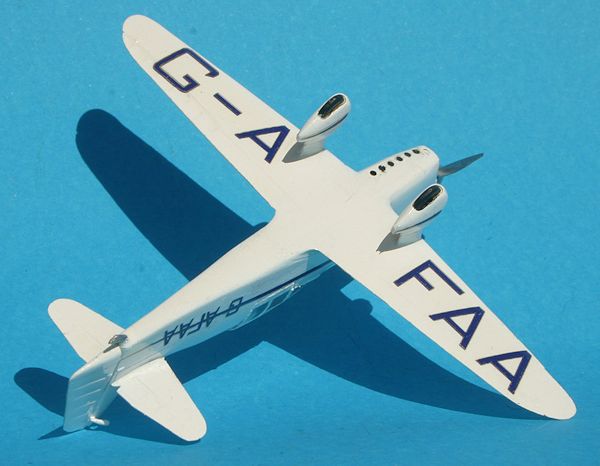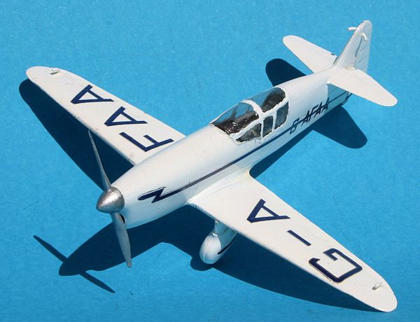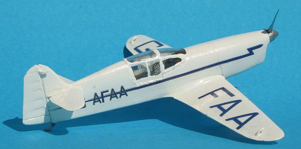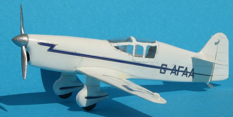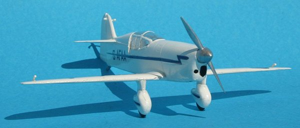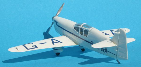 The subject of the kit, Mew Gull E3H G-AFAA, was Captain Edgar Percival's personal “Super” Mew Gull. Built in 1937 at the Percival works in Luton, it had a superficial resemblance to the earlier Mew Gulls but was substantially different. It had a more powerful engine and smaller wing span, altogether faster with a higher climb rate and longer range. It was written off when on loan to de Havilland for propeller trials during the Second World War. The remains were burnt at a garden fete after the war.