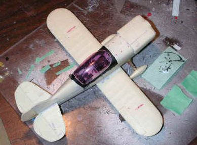 The canopy was cut free and carefully sanded to fit the cockpit, then the white