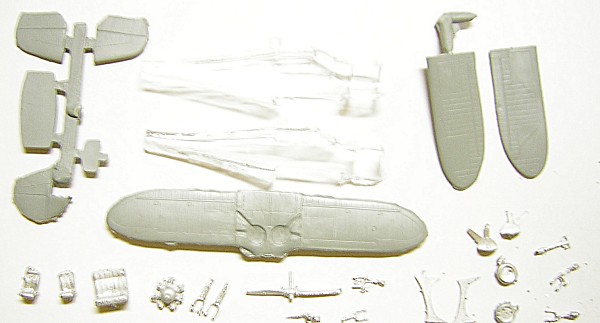 All Merlin’s small parts are cast in white metal, which was the precursor of resin, and are rough to the point of being useless. Equally useless is the instruction sheet. I quote: “…Glue fuselage halves together taking care not to get any excess cement onto cabin windows…Cement lower wing assembly into place beneath the fuselage…Add Wing struts, leave to dry out thoroughly. Glue the two top wings into place. Cement all tail units onto fuselage…Rig completed model.” Get the picture? A picture is precisely what is not provided. No exploded view. 3 view line drawings at least are 1/72 scale so measurements can be matched to the model. Under decals I said “presumably” 2 A/C, because those line drawings show an Army and a civil plane. I found no decals in the box; and it’s unlikely I had midnight requisitioned them for another project. Merelin’s decals were always on par with early Airfix.
