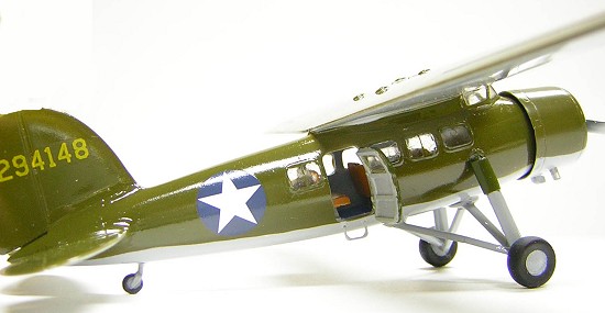 To remedy that problem I decided to build the UC101 with an open door. Even then not much is visible. The inside of the door has no detail, so I added some bogus framing made of Evergreen strip. I wasted considerable additional effort detailing and busying up the cockpit. The injected canopy is clear, but the optics aren’t exactly Bausch & Lomb. Still more time and work were frittered away filling and sanding the poor fit of the nose piece. When the cowl ring is slid into place over the engine it covers the gaping and mis-matched seam. Also sloppy up front is the fit of the engine in the cowl. Rather than the usual too-tight fit, this one is too loose. A ring of Evergreen 1.5 strip glued around the cylinder heads cured that.
