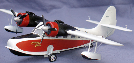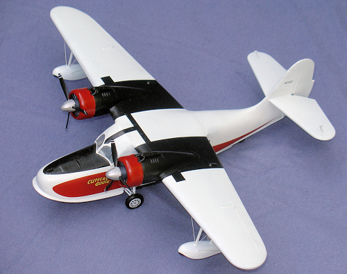 “Cutter’s Goose” decals were obtained for a reasonable price from “Draw Decals” and went on surprisingly well for a ham handed modeler like me. Do not follow the overhead paint scheme kindly provided with the decals, however -- photos from the show make clear the black painted portions on both sides of the wing of the “reel” Cutter’s Goose were not limited to the engine nacelles as shown in the illustration but extended to wide bands around the nacelles as well.