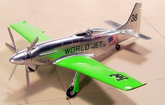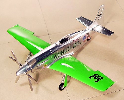 On its first Reno outing, Don Wittington turned in a respectable 453.078 under the Precious Metal #9 livery. The Gold heat started with Bob Hoover’s famous “Gentlemen, You have a race”, Don Wittington put the coals to it and was immediately rewarded with the propeller governor going out of control. He did an excellent job of a wheels-up landing in Lemon Valley with major but repairable damage. The Wittingtons rebuilt the highly modified P-51 once again. More work was done to the aft fuselage and a new engine/propeller combo was installed. The plane emerged as #38 and under the name of a new sponsor, “WORLD JET. INC”.