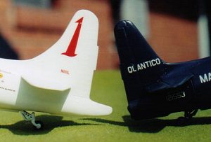 Hawk/Testors kit is incorrectly shaped, being too large and too curved.]
