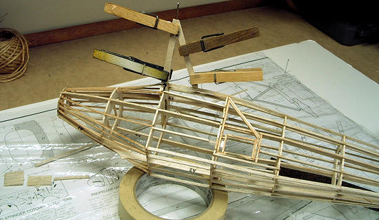 stabilizer on and the rudder affixed, the wing then gets glued down.