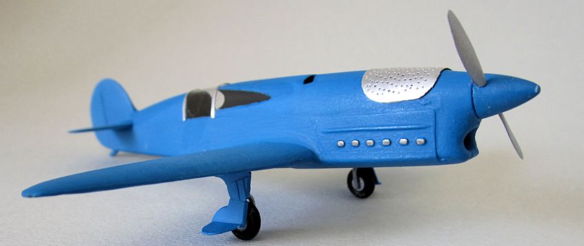 I can't find any other example of this sleek beast in 1/72 on the internet, and so for the time being, until some other deluded madman builds one, this is unique. It looks very nice indeed on the shelf, next to my Farman Monowheel racer, awaiting the day when I forget how I made the canopy, pick it up amidships and am forcibly reminded how very self-adhesive Sellotape is.