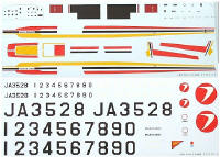 The major work is to join these assemblies to the main frame, already equipped with the wing and gear. The civil decoration decal sheet offer 3 aircrafts in blue, red and yellow, and green. (but why not, you can create you own decoration, gathering on your near club). The art box and sides display figures, but don’t think you lost them, a Japanese sticker message on the notice tell you that they are exclude. (for this, you can modify some figures from Tamiya 1/20 formula one set, by example). Neither try to find the vinyl tires, yours are in plastic (a better choice).