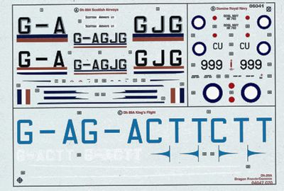 Current catalogue kit has two schemes, camouflaged RAF and British civil. Older