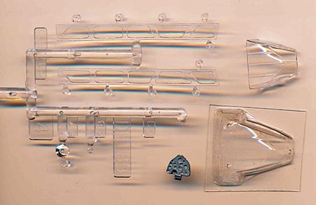 additionally a vac-formed cockpit canopy, a piece of tinted clear card, a white