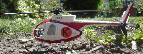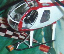When the skids were both on (the first time) I attached the tail setup - another butt-join or two, the characteristic Y-tail of the 500C formed by two vertical fins and one at a 45° angle supported by a small strut. To call this "fiddly" would be an understatement. I constructed a jig to support the setup (ie, a book and a model box) and left it to dry. I then separated the two parts making up the tail rotor and painted them - the hub Flat Black and the rotor blades Flat White with Red stripes. I think these may have been included on the decal sheet that came with the kit but I decided to do it myself. I then attached the fire extinguisher to the cockpit side, and then closed it up with the expansive canopy. Whenever I handled this sizeable part I was careful to clean it with a tissue to get rid of fingerprints - this worked very well.