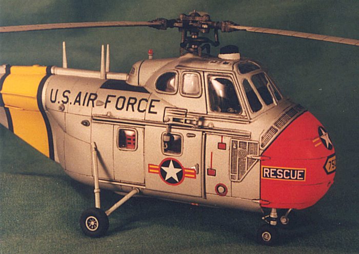 Though replaced relatively quickly in US service by its more powerful and capable offspring, the H-34 (S-58), Sikorski's H-19 and it derivatives soldiered on for many years in the inventories of other air forces. The H-19 was the first troop-carrying helicopter to see service in Vietnam, as examples appeared towards the end of French involvement in the conflict. Surviving French aircraft were passed on to the fledgling Vietnamese Air Force (VNAF). For several years these were only helicopter assets of the VNAF. In the early 60s the VNAF inventory was bolstered with the addition of ex-USAF rescue UH-19Bs, as depicted by this model.