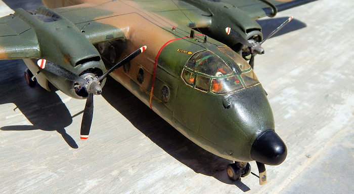 Not an easy kit build I have to admit particularly so because the styrene was soft with thin section all along and in fact each part was reinforced with interior plastic card strips more than that described above. The fuselage windows were covered with Kristal Kleer. The kit is accurate and is recommended to those keen on building transport types that served in combat zones.