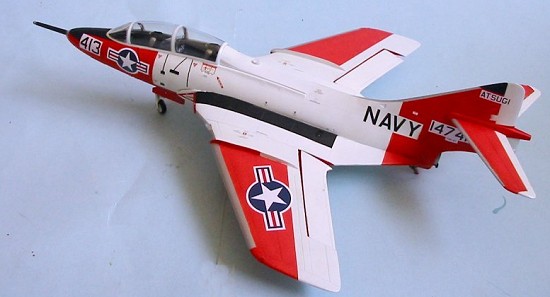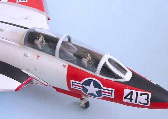 I then attached the landing gear, exhaust cone, tail hook and nose probe. The last items were the clear resin wingtip lights, landing light and beacon housing. At that point I heaved a huge sigh of relief and gratefully carried the model over to sit next to its single-seat relative.