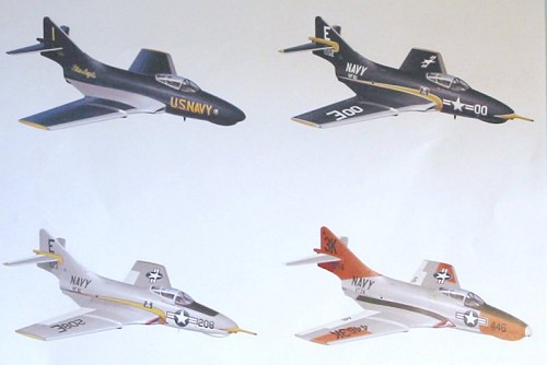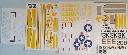 Decals are provided for the CAG airplane of VF-61 in Glossy Sea Blue, a later VF-61 airplane in gull-grey/white, a fighter-trainer from VT-24 (which could easily become even more colorful for the modeler with photos of this airplane later in its life), and the team leader’s airplane for the Blue Angels.