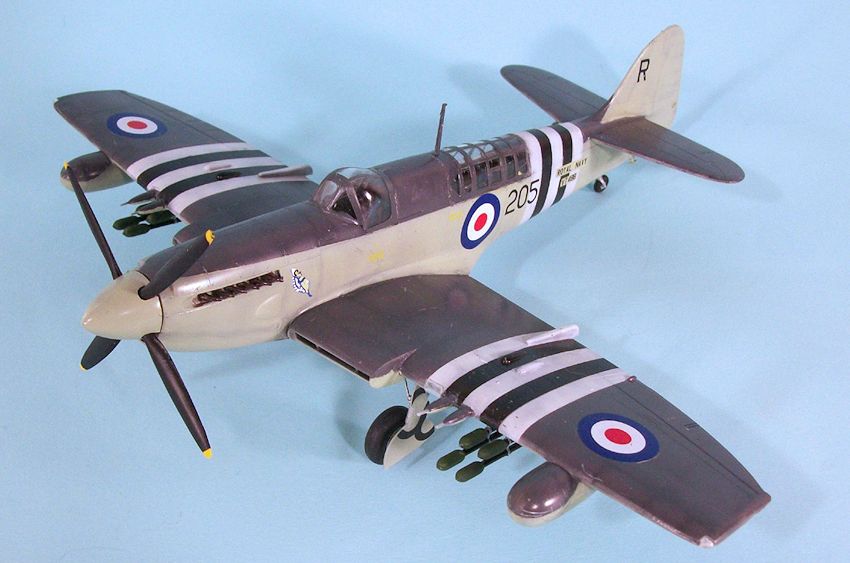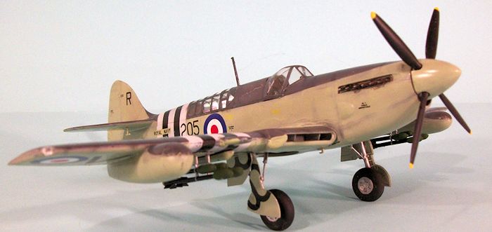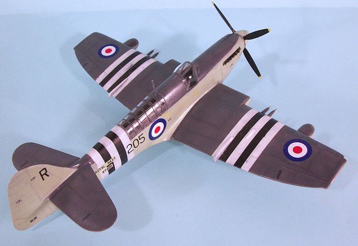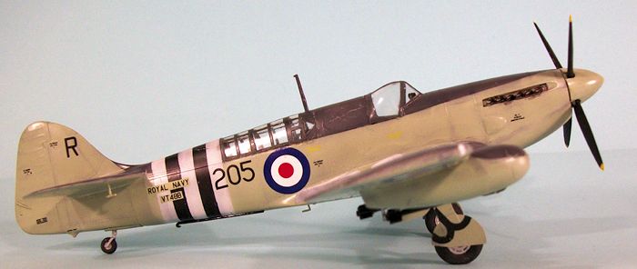 I gave the model an overall coat of Xtracrylix “Satin” clear varnish. I then unmasked the canopies. I attached the landing gear, radio mast, catapult spools and other antennas, and prop. I also attached the underwing rockets.
