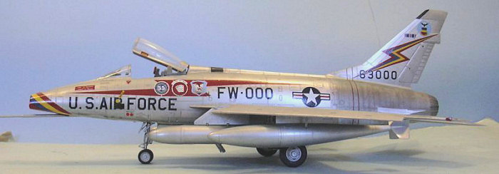 I used the Cutting Edge decals to do Ray Toliver’s famous FW-000 “Triple Zilch” when he was Wing King of the 20th TFW in 1957. The decals went on without problem. I was going to use the kit decals for the stenciling, but they fell apart when I tried to move them around on the surface, so I ended up using stencils from a 1/32 F-86 sheet from Cutting Edge. The lettering is small enough no one is going to notice whether the stencils are really right or not, they are just placed where the instructions showed stencils should be.