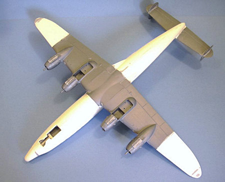 I knew going in that this kit was going to be vastly different from what I would do as a standard airliner. I didn’t worry about internal detail, and assembled the fuselage with a load of fish weights in the nose to insure nose-sitting. I then assembled the wings and tail and attached them. All this was easy, with the fit revealing just how much work lay ahead.