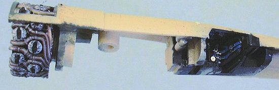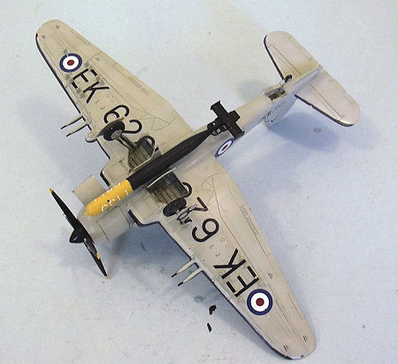 I realized after assembling all the landing gear that the model sits a bit too low for the torpedo to fit in position. I resolved this by trimming off about 1/32 inch from top and bottom of the rear rudders, which gave clearance without problem afterwards. I decided not to use the rockets since the airplane would be armed with either torpedo or rockets, not both.