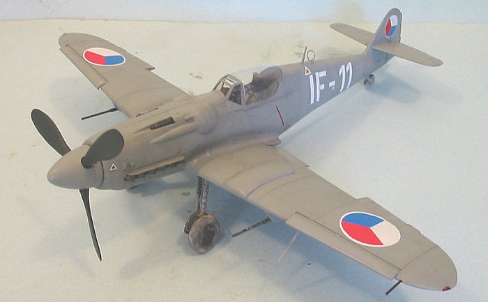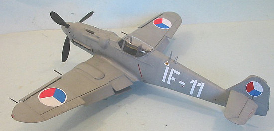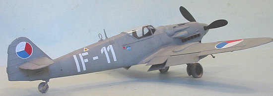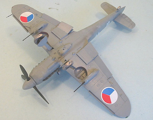 At first, doing the Mezec gave me fits, since there were no decals available. Eventually, I sourced some white circles from a Tamiya Spitfire sheet, and used those for the wing insignia, cutting the red and blue sections from solid-color decal sheets. I found the Czech national insignia used on the rudder on a decal sheet left over from another project. The serial number was done using a sheet of white stripes, cut to size for the letters and numbers.