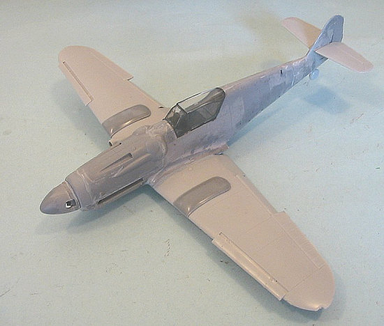 “pre-shading” to the panel lines with flat black, I used Xtracrylix “RLM 02,”