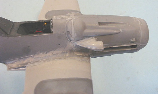 While the kit parts do have flash on them, and the interior of the fuselage needs cleaning up in order for the kit cockpit to successfully fit, the result when assembled is a fuselage that looks like it was injection molded by Hasegawa themselves.