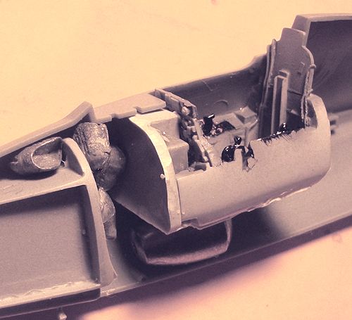 The photoetch dive brakes are difficult to bend and get a full-curved surface, but with a little repeat effort they looked OK and were attached to the plastic interior parts.