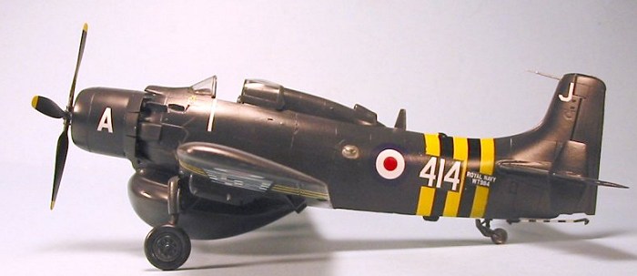 I unmasked the canopy and door windows, and attached the wheels, prop, tailwheel and tail hook. The few photos I had of British Skyraiders showed they were well-maintained, and that the Glossy Sea Blue had not weathered much by the time of the 1956 Suez Intervention, so I left the model clean.