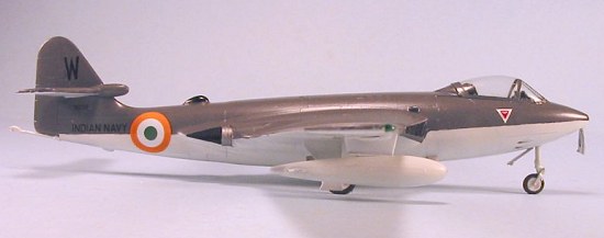 Unfortunately, the Mk.100 sheet doesn’t include the leaping White Tiger insignia carried by 300 Squadron; however, there are a number of photos from the 1971 war that show the Sea Hawks without the distinctive unit insignia, so doing without is historically accurate. I have to say that I was unable to find any photos of Indian Navy Sea Hawks in any scheme but the one I did; what is shown in the kit instructions may be for a Mk.100 shortly after arrival from the Germans, but apparently it would have been repainted quickly to conform to the standard scheme of the earlier airplanes which had all been delivered in the then-standard FAA scheme.