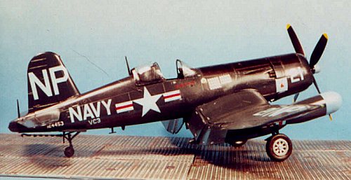 weathered-out Solomons-based F4U-1. The longer nose of the F4U-5N looks better