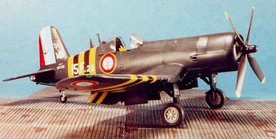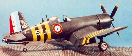 The first time I saw a picture of an F4U-7 in "Suez stripes" I wanted to do one that way. Now there is a good kit of this airplane, and my model represents the airplane restoration I was most closely associated with, which brings back good memories every time I look at it.