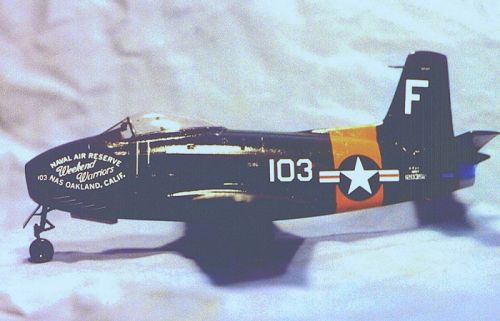 The Fury is the essence of simplicity: overall midnight blue, including landing gear, wheel wells, etc. For the Naval Reserve airplane, I shot Gunze-Sanyo H-14 Orange, then masked over to get the "reserve stripe." Both models were painted overall with Gunze-Sanyo H-55 Midnight Blue.