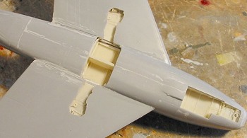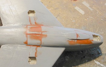 I also used quite a bit of putty with the resin tail cone, and also along the fuselage on the left rear side, to avoid a concave curve when seen in plan view.