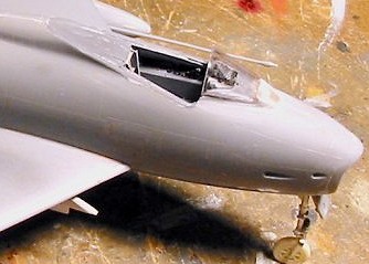 If you throw away all the resin interior except for the forward part of the nose wheel well and the cockpit, and then add on an intake cover, you will have a model that goes together relatively well, and that won't have turned the air over the workbench that rich shade of royal purple with the golden lightning bolts flashing all over.