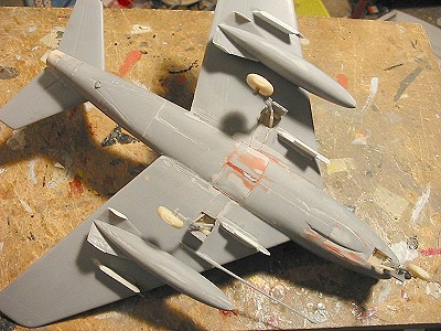 I also made the four extra underwing pylons from Evergreen sheet plastic. If you're going to do one of the two Marine aircraft on the decal sheet, you don't need to do this, since neither is an FJ-4B.