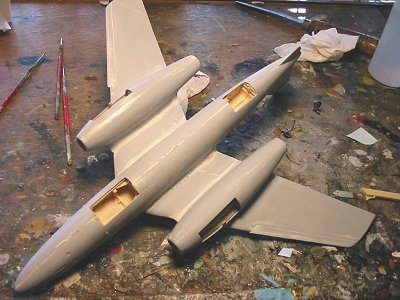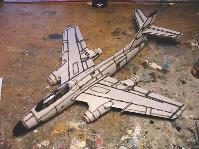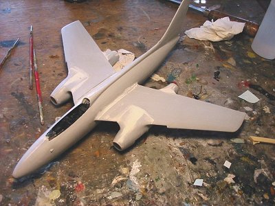 With the horizontal stabilizers attached and the canopy masked over, the model was ready for the paint shop.
