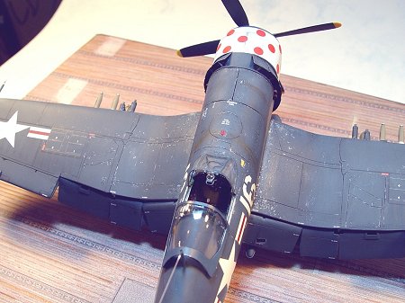 Squadron's Corsair engine cowlings were painted white with red polkadots.