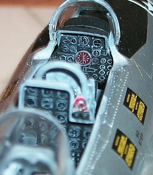 The seats were given a coat of neutral gray prior to assembly. The headrests were painted flat red and the belts painted light gray with Metalizer steel buckles. The ejection handles were painted flat yellow. The assembly of the entire office was straightforward with no problems. The fit was good and the final product was satisfactory.