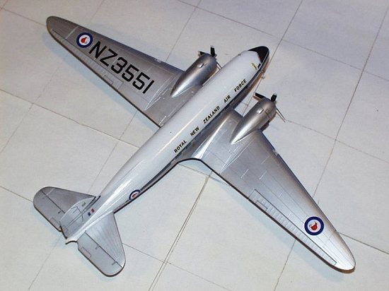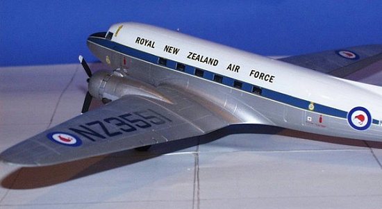 The RNZAF VIP aircraft were painted in gloss white upper fuselage, Lower fuselage wings and cowls were polished metal and the under sides of the wings were painted in a colour known as Dulux Horizon Grey. The instruction sheet recommends Tamiya XF-19 as being the closest match.