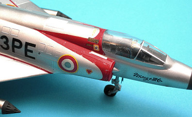 Decaling would prove to be an ‘interesting’ process. The original plan had the excellent looking and printed decals from the Decals Carpena Sheet 72/24 Mirage III/5 (Portugal production) being used. Though they looked great, apparently no adhesive was used in production as they simply ‘fell off’ over night. To complete the model, various Model Decals sheets provided; cocardes ( Sheet 62), large fuselage codes ( Sheet 63), some stencils, speed brake covers and large unit insignia came from sheet No 88. Matchbox supplied the coloured rudder and fuselage Mirage IIIC lettering while the 1976 Revell Mirage kit supplied the red scallops on the intakes and aft of the canopy. An old Scale Master sheet supplied the red walkway stripes that really add that something extra to the finished model. Eventually they all did work, with a cloth soaked with hot water working wonders on the Model Decal items.