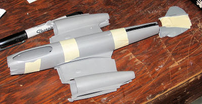 the cockpit opening in order to narrow the CA fuselage to match the Tamiya tail