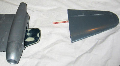 Ready to attach the tail section I glued on the Tamiya horizontal stabilizers