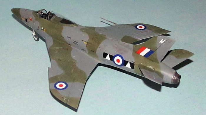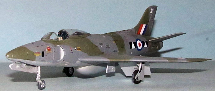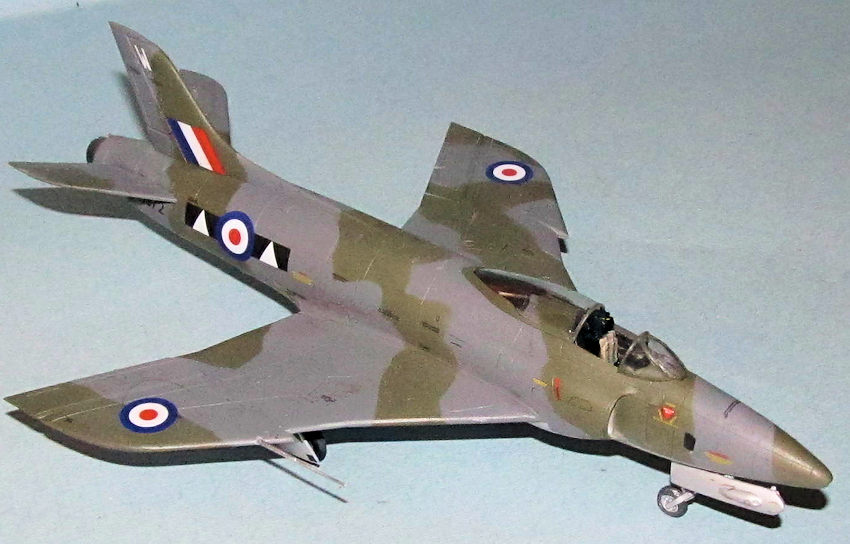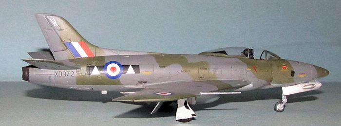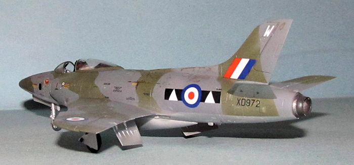 The color scheme was the late 50s RAF scheme of dark green and dark sea grey. I used the Tamiya colors XF-24 and XF-70 for that. The underside was painted Tamiya Silver Leaf straight from the spray can.