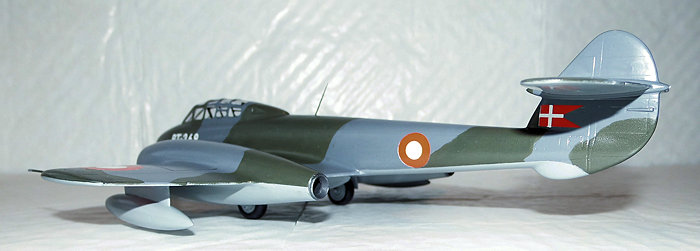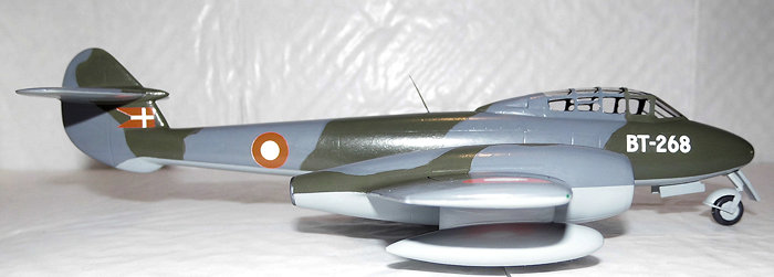 The Gloster Meteor was the first operational British jet fighter, which entered service in July 1944 with the primary task of chasing flying bombs (the V1) and in the more developed Mk. III variant also ground attack. The two aircraft that might be considered as the F.Mk IV (later F.Mk.4) prototypes was two specially build Mk. IIIs, EE 454 and EE 455, fitted with the prototypes of the Derwent 5 engine, which became the standard power plant for the production machines. In the late 1940s the F.Mk.4 became widely exported. Argentina, Belgium, Denmark, Egypt and The Netherlands took delivery of some 240 aircraft altogether.