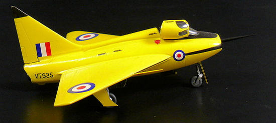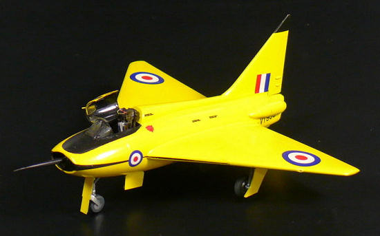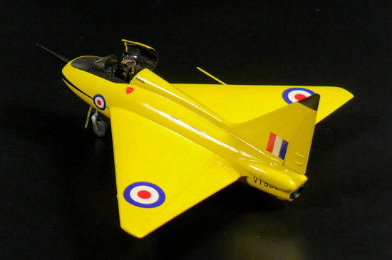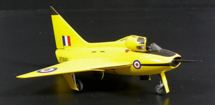 (Rolls-Royce Nene), an ejection seat (Martin Baker), and a delta wing. The