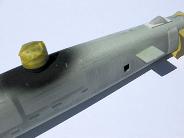 near invisible. Two new rectangular windows were cut in the rear fuselage. All