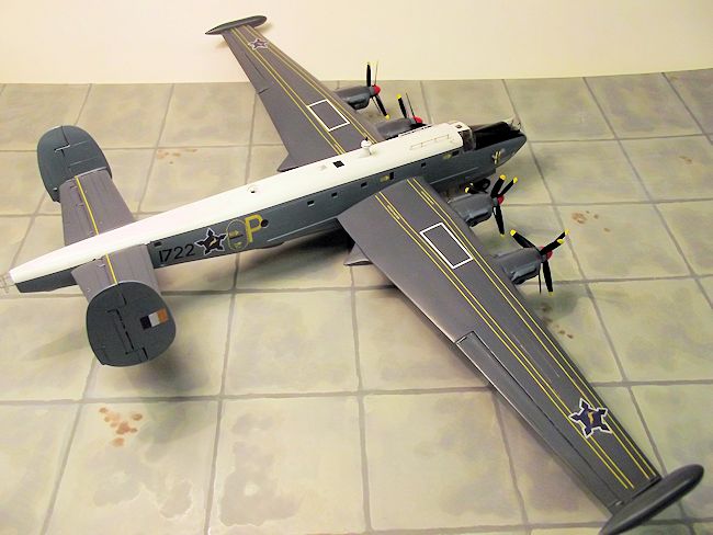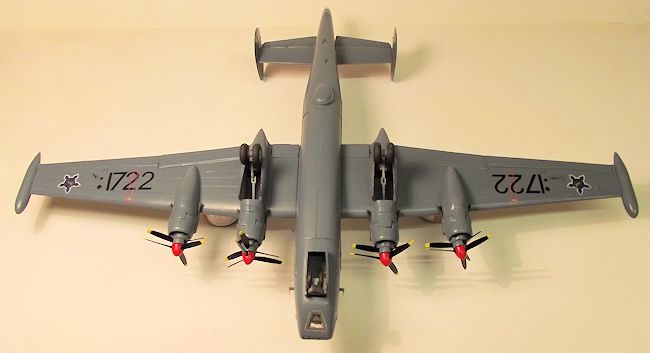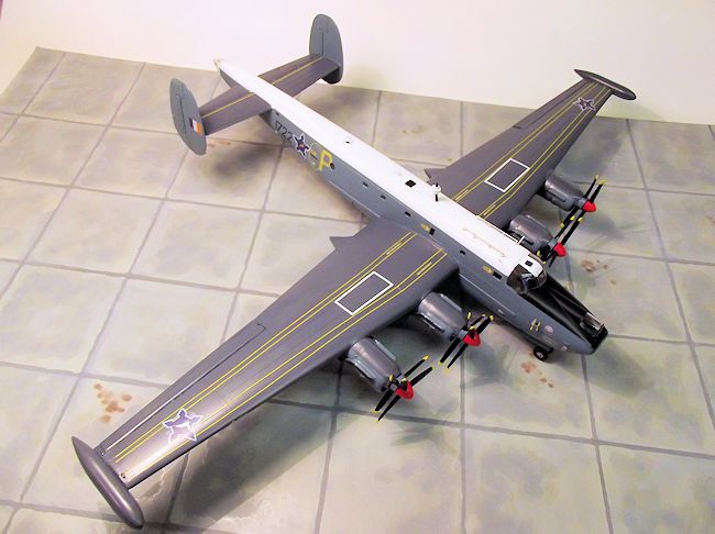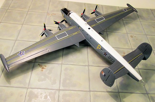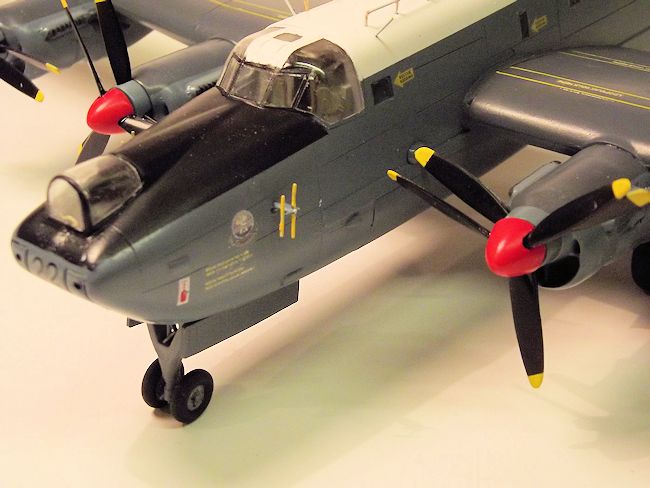 The undercarriage units were swung down and glued into position, then I added the wheels, undercarriage doors, aerials and the distinctive “spark plug” antenna to the fuselage spine. The towel rail aerials aft of the flight deck were made up from brass wire.